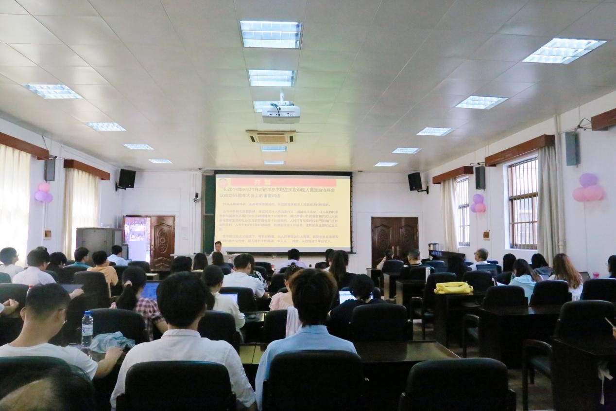 7月3日下午,由校党委统战部、beats365亚洲版联合举办的“凝心铸魂强根基、团结奋进新征程”主题教育专题报告会在我院107报告厅举办。报告会邀请自治区政协副秘书长,办公厅副主任、党组成员肖顺平作题为“从协商民主到全过程人民民主”的专题讲座。讲座由我院党委书记聂鑫教授主持,校党委统战部成员、学校各民主党派成员、无党派人士、留学归国人员、归侨、侨眷、台胞、台属、党外知识分子代表及我院众多师生参加了本次讲座。