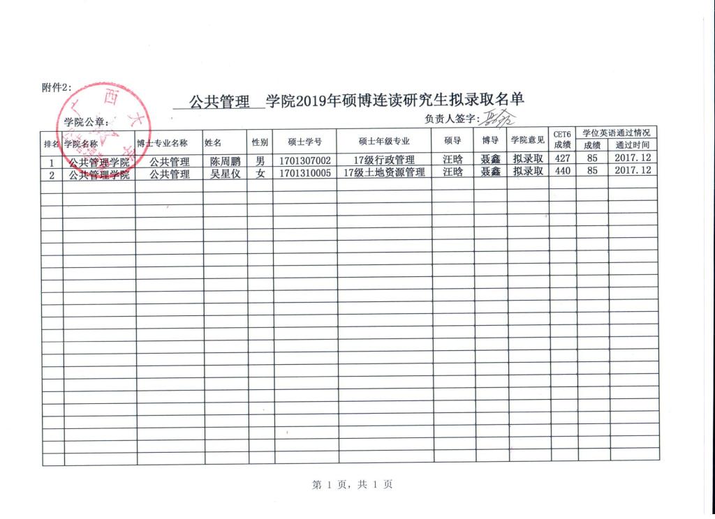 beats365亚洲版2019年硕博连读研究生拟录取名单公示