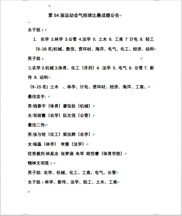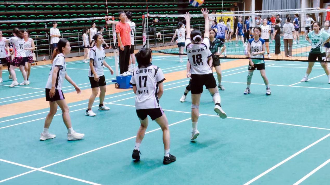 我院女队则前后对战林学院和法学院。在与传统强队林学院的角逐中,女队成员们坚持不懈,积极调整战术,虽未能进入决赛,但努力拼搏的精神值得赞叹。在与法学院三四名对决赛中,虽首局状态欠佳,未能适应对方战术而憾失一局,但队员们并未气馁,而以更加饱满的精神状态迎战,最终以2比1的比分赢得比赛,书写了学院女排的新篇章,首创女子组第三名的佳绩。我院公共管理研211班的王婷是女子队的领队,作为一名准毕业生,她表示最后一次代表公管出战,要拼尽全力,为集体荣誉而战。公共管理研221班的阮文俏是女子队的教练,她在赛场上沉着冷静,理性分析战局,与队友互相配合,保持专注,荣获最佳攻手。她表示正是队友们顽强拼搏与努力、互相鼓励与支持、彼此包容与安慰在本次运动会中取得了首次获得女子组季军佳绩。