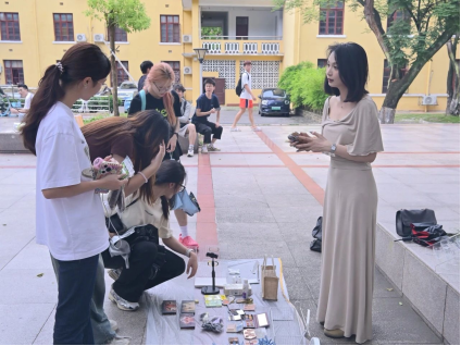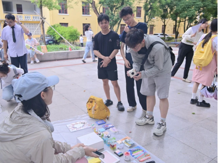 活动现场,各类商品琳琅满目,摊位前热闹非凡。除了常见的课本和工具书,小巧可爱的钥匙扣、做工精巧的手工艺品、童真有趣的泡泡机也出现在市场上,吸引了众多同学驻足挑选。摊主们热情洋溢地向来往同学介绍商品的特点和使用方法,讲述它们背后的温暖故事,每一件物品都承载着珍贵的校园记忆。
