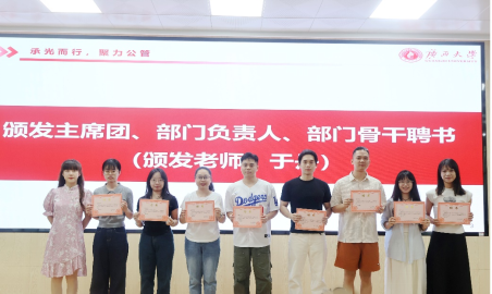在表彰仪式环节,刘佩瑶为二十三届优秀部门负责人,优秀学生骨干颁发荣誉证书,为二十四届优秀志愿者颁发荣誉证书。
