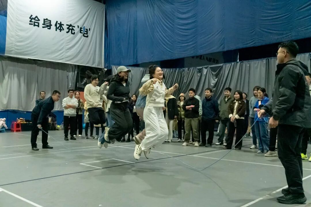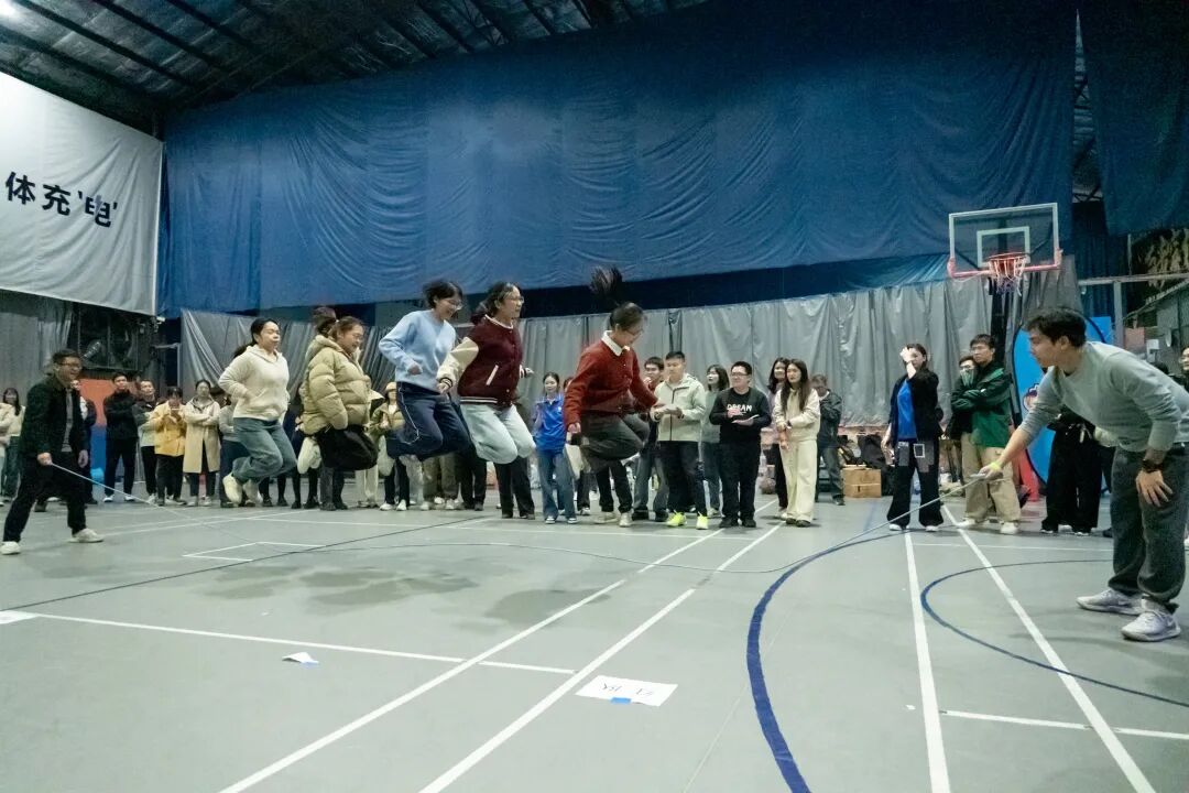 压轴的“绳彩飞扬”集体跳绳活动,成为考验团队协作的关键环节。各队伍成员相互配合、调整节奏,每一次全员顺利过绳都引来场下阵阵喝彩,队伍间的比拼你追我赶,团队的凝聚力在翻飞的绳影中愈发强劲,充分展现出MPA学子积极向上、奋勇争先的精神风貌。