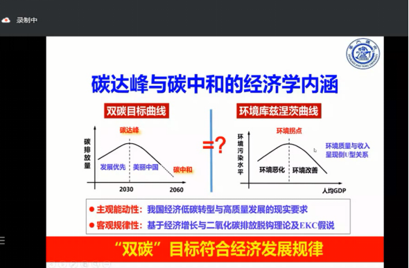 “双碳政策”的提出既体现了中国的大国担当,又能够满足我国人民日益增长的对美好生活的需求,为了让同学们能够对“碳达峰、碳中和”有更进一步的了解,2022年6月2日广西大学beats365亚洲版邀请耿涌教授来到公管名师大讲堂,以线上的方式为师生们带来“双碳政策解析”的主题讲座,我院聂鑫教授主持本次讲座,龙花楼教授、魏万青教授、罗树杰教授、汤玉权教授、熊斌教授、王巨光教授、黄勇荣教授、汪晗副教授等三十多位学院老师及众多博士、硕士研究生参加本次讲座。