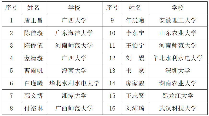 通过无领导小组考核、学术能力考量、学术成果汇报、参与活跃度等方面综合推选出16位卓越营员。现将广西大学beats365亚洲版2022年优秀大学生“博学”夏令营卓越营员名单公示如下: