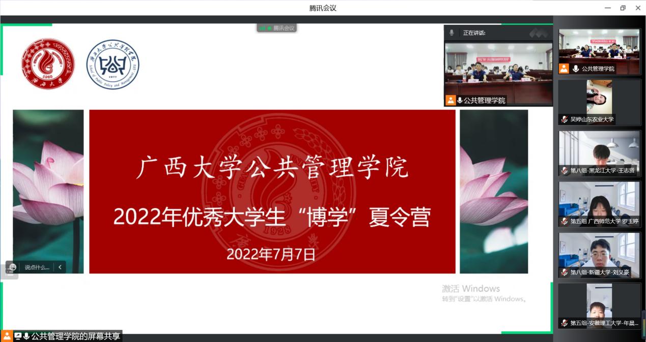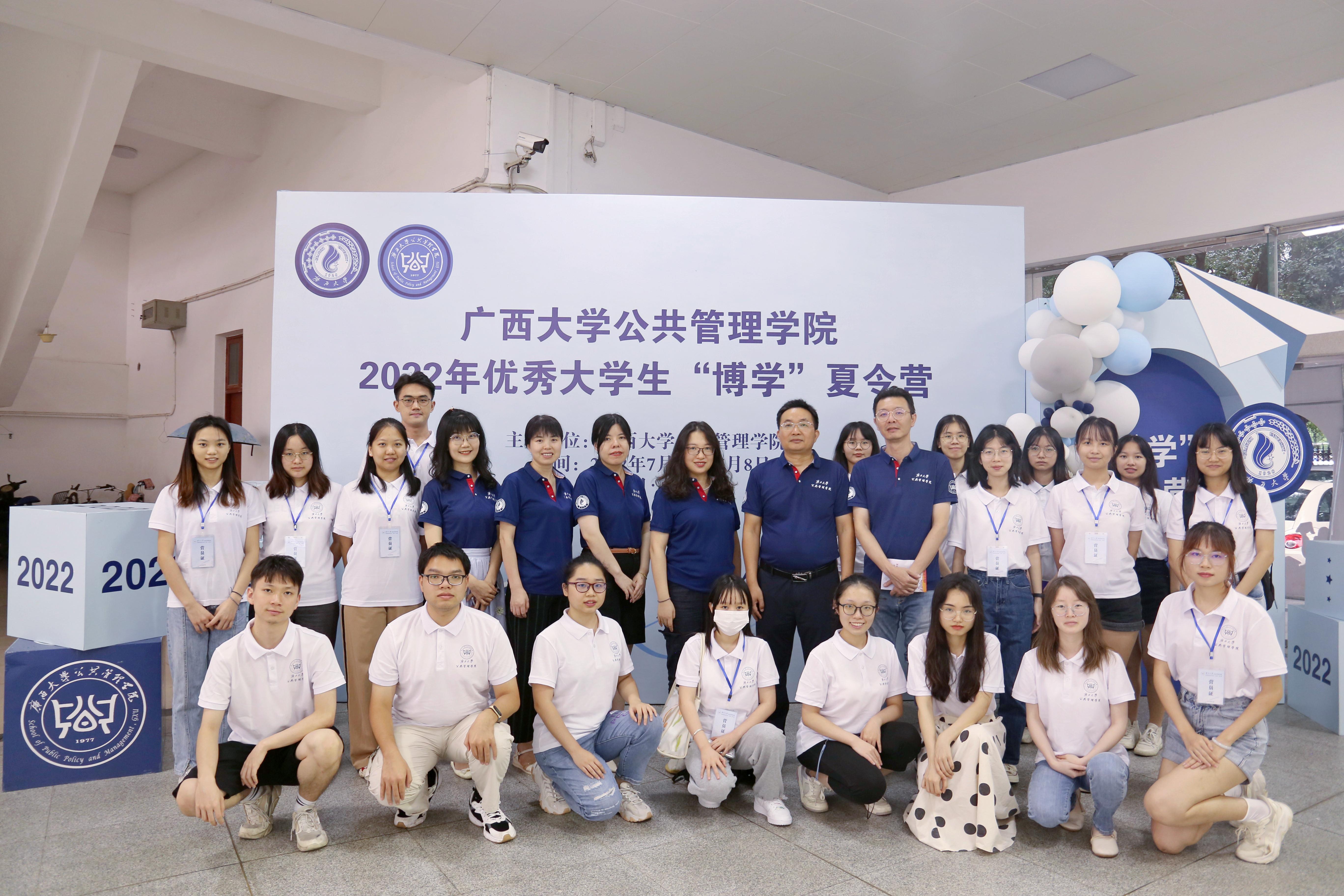为增进全国高校优秀大学生之间的交流,增强大学生对广西大学beats365亚洲版的了解和兴趣,吸引和选拔有专业兴趣和发展潜力的优秀大学生进入我院攻读硕士学位。7月6日-8日, 广西大学beats365亚洲版举办了为期3日的2022年优秀大学生“博学”夏令营系列活动,来自全国39所高校的73名优秀学子齐聚我院,领略公管文化,共襄学术盛宴。
