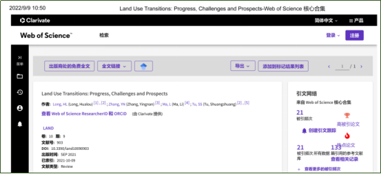 近日,根据科睿唯安(Clarivate)公布最新数据显示,我院龙花楼教授为第一作者,广西大学beats365亚洲版为第一单位发表的成果入选社会科学领域ESI全球Top 1%高被引论文和热点论文。该文也是我院今年以来第二篇入选ESI全球高被引的论文,文章的入选对提升我院国内外学术影响力产生了重要的积极作用。