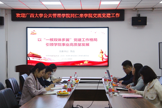 为进一步推进“广西高校党建工作标杆院系”培育创建工作,深入了解全国党建工作标杆院系培育创建单位的建设思路及特色经验做法,近日,我院党委书记聂鑫带队到中国矿业大学(北京)、北方工业大学和北京语言大学等高校进行党建工作交流学习。