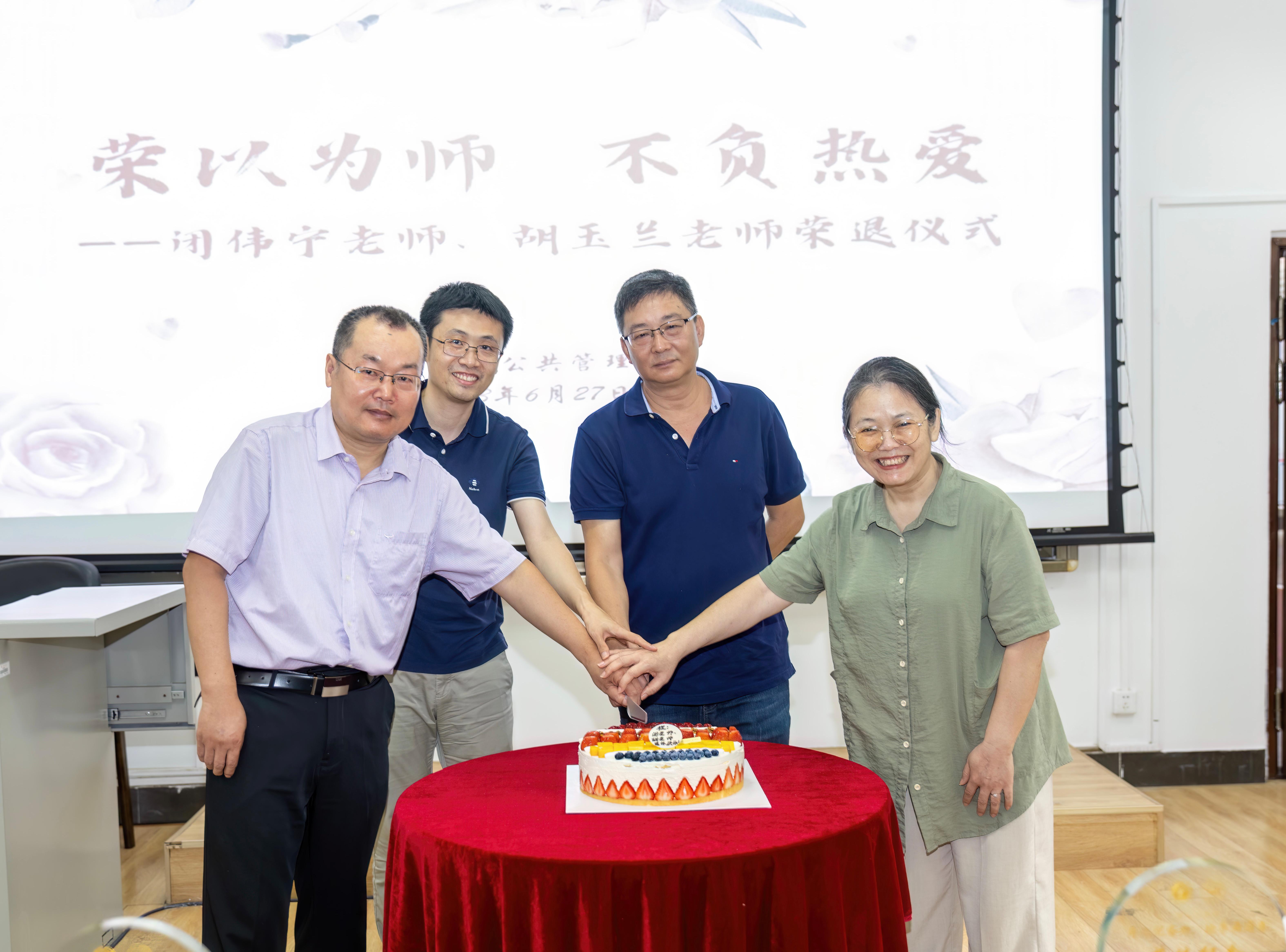 6月27日上午,我院在107报告厅为2023年度退休的闭伟宁、胡玉兰2位教师举行隆重的荣退仪式。全院教职工和部分学生代表参加仪式。