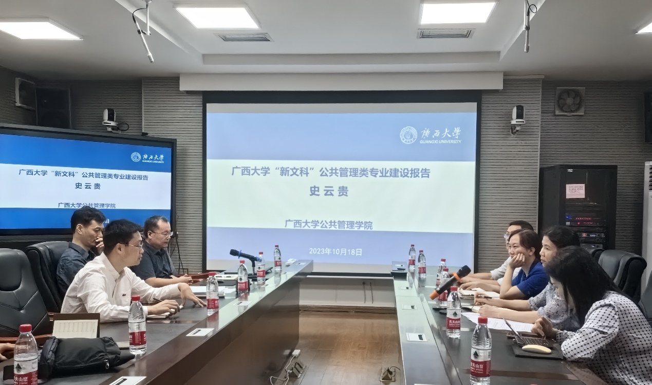 会上,史云贵介绍了我院新文科建设的工作思路,并对学校新文科建设工作提出了几点建议。他介绍,近年来我院围绕新文科建设,打造公共管理学科专业建设取得了一些成绩。学院本科和硕士比例达到了研究型学院的学生结构,在2022年的软科中国大学专业排名中我院公共事业管理专业获A层次评级,排名进入全国前20%。学院紧紧抓住西大“新文科”公共管理类专业的定位这一关键点,明确办学定位和建设目标,完善学科体系,实施“走出去”和“请进来”发展战略,推动学院学科专业高质量发展。围绕国家重大战略建设需求,聚焦“边疆民族区域治理”特色,把握专业发展内涵、课程资源建设、人才培养模式、师资队伍建设等着力点,积极助力学校新文科建设。他提出,新文科建设必须坚守立德树人初心,牢记培育时代新人使命,围绕培养复合型、创新型人才的目标,转变旧理念,改革旧课程,摒弃旧课堂,打破旧范式,促进文科人才培养能力和培养质量持续提升。