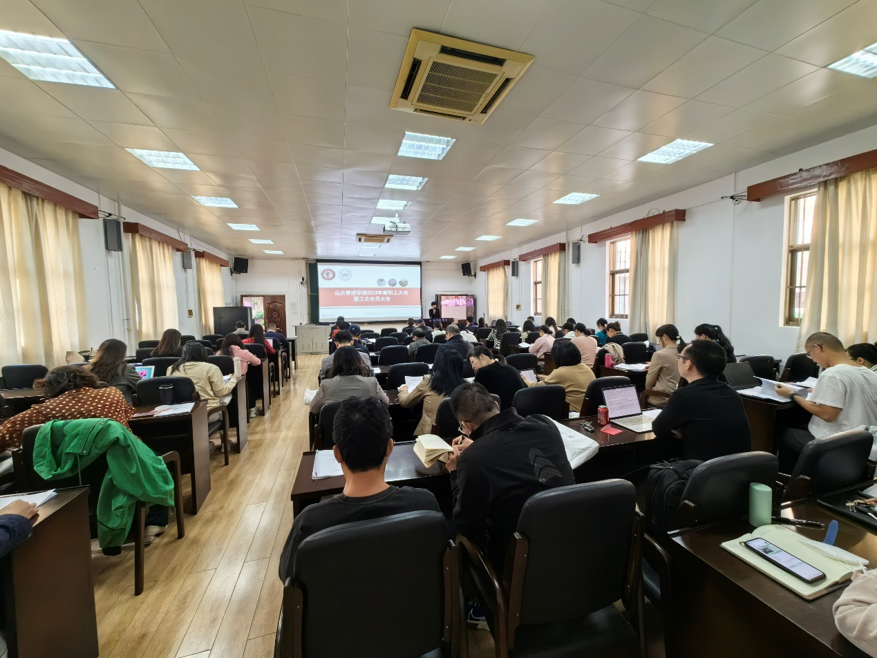 11月21日下午,我院召开2023年度教职工大会暨工会会员大会,全院教职工参加会议,大会由学院副院长陈林主持。校工会常务副主席吴贤礼,离退休代表胡玉兰老师受邀到会指导。