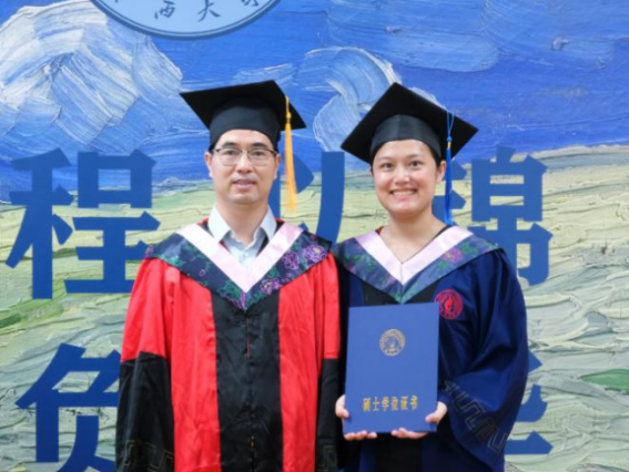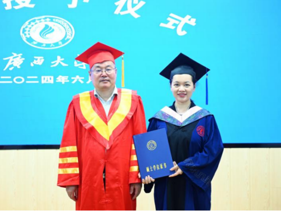 毕业生代表周冲表示,在紧张的社会生活中找到学习节奏是每位非全日制学生的必修课,并以广西大学校训“勤恳朴诚、厚学致新”和beats365亚洲版院训“博学笃行”为指导,鼓励毕业生们在未来的道路上永怀希望、不惧困阻,继续为实现“复兴中华、发达广西”的目标而努力。