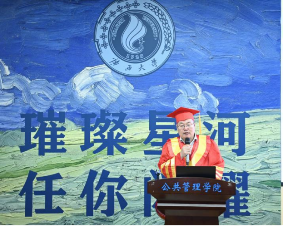 李国梁作为教师代表发言,他深入阐述了公共管理专业硕士学位的意义,强调其目的是培养适应社会主义现代化建设需要的高层次、应用型、复合型管理人才。他以MPA三个字母为引,向毕业生们提出了三点殷切的希望:成为公共管理领域的大师、具有公共精神和责任担当、在行政管理中坚持以人为本,并希望毕业生们不忘初心,继续关注和支持母校的发展,并祝愿他们未来工作顺利、家庭幸福。