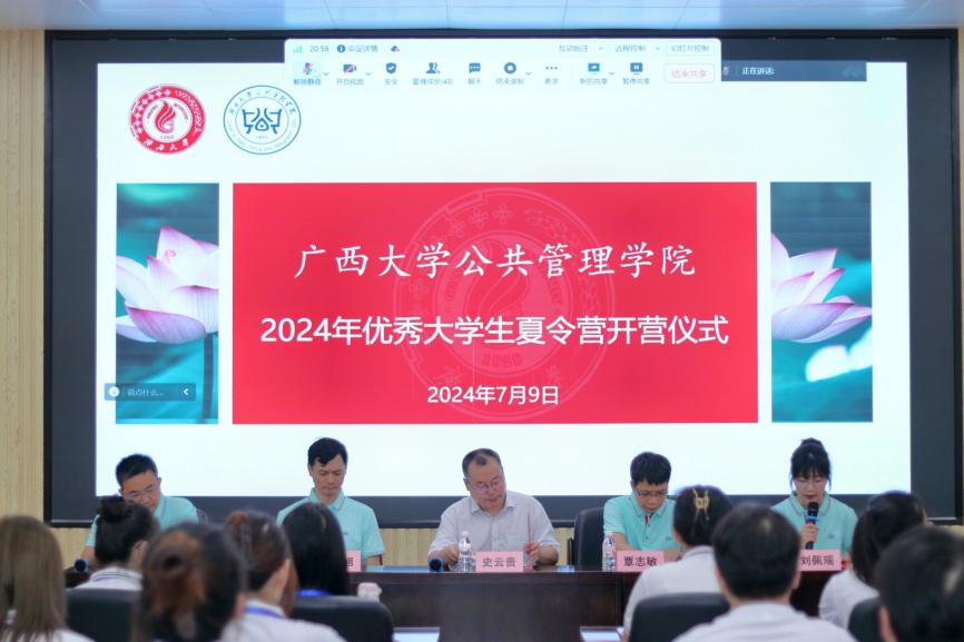 7月9日上午,广西大学beats365亚洲版2024年优秀大学生“博学”夏令营正式拉开帷幕。我院院长史云贵、副院长周均旭、副院长覃志敏、MPA教育中心副主任熊斌出席了开营仪式。此次夏令营是我院连续第六年举办的优秀大学生“博学”夏令营,以“线上+线下”的形式开展,来自全国40多所高校的70余名营员相聚云端、汇聚校园。