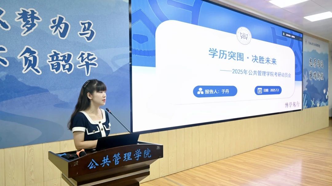 随后,于丹以“学历突围 决胜未来”为主题作考研动员。她鼓励同学们坚定考研信念,科学高效利用学习资源备考,保持良好的心态与生活习惯,并热忱欢迎大家报考我院研究生。