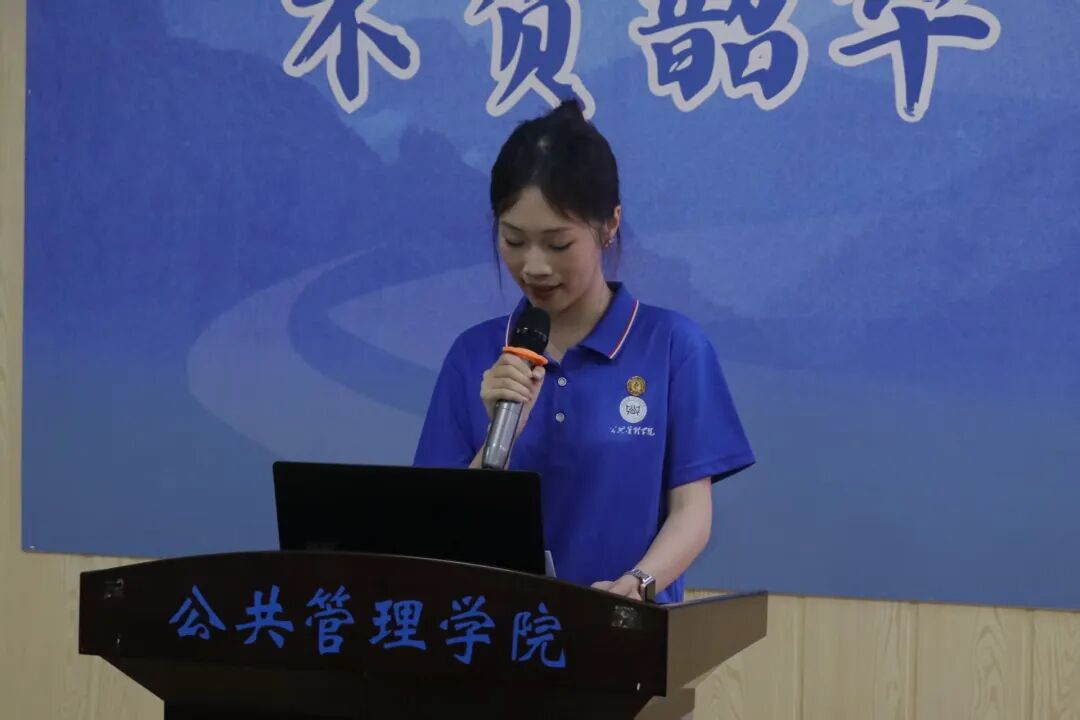 黄婧婧向参会人员分享了从收到录取通知书到入学报到的心路历程。从九三阅兵中的后勤保障到大数据预测需求峰值,从暴雨天里及时搭起的临时安置点到校园迎新中的点滴善意,她真切体会到公共管理不是抽象的理论和台前的光鲜,而是一桩桩以人为本的具体实践。她呼吁新生们把专业读透,把实践做好,践行“博学笃行”的院训,为社会进步贡献青春力量。