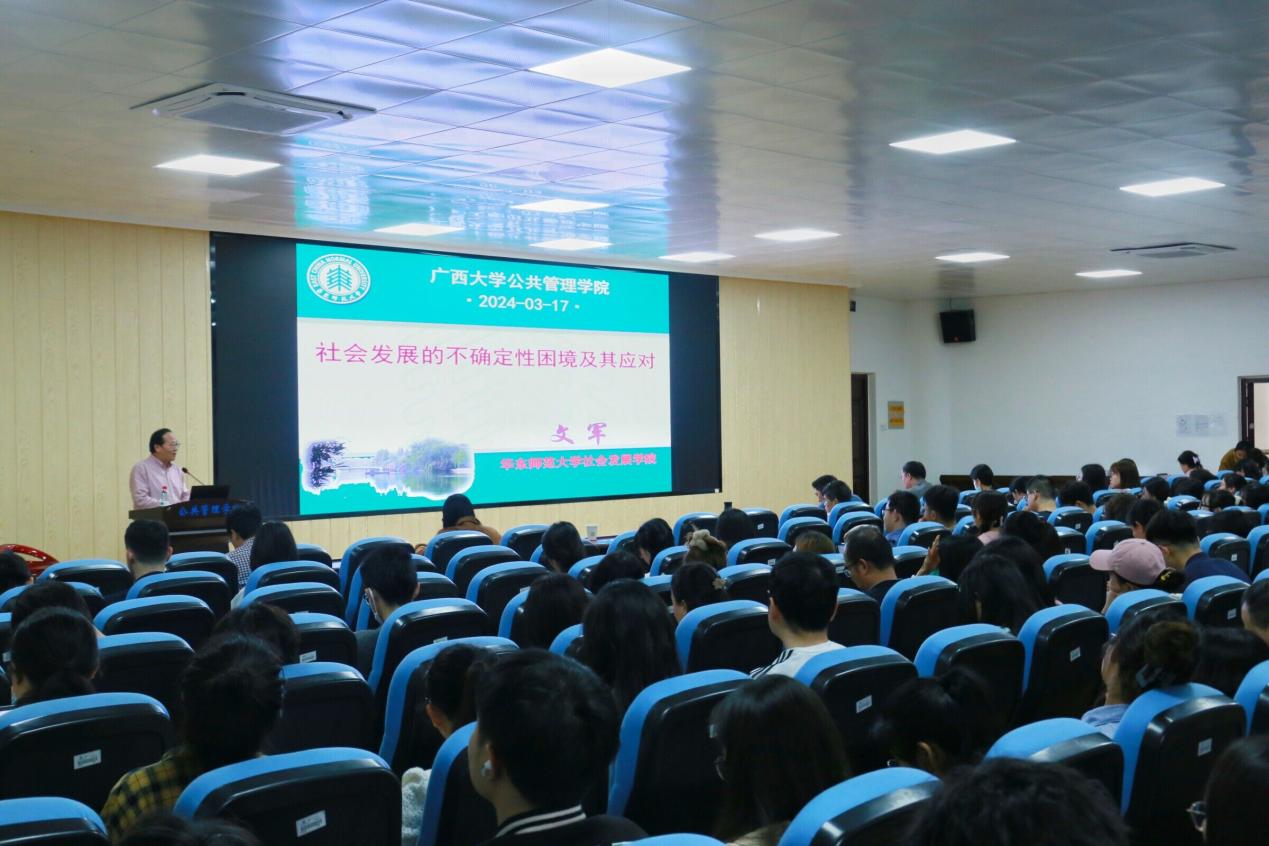 3月17日下午,华东师范大学社会发展学院院长、上海市“中国特色的转型社会学研究”社会科学创新研究基地首席专家文军教授受邀于我院203会议室作题为《社会发展的不确定性困境及其应对》的学术讲座,本次讲座由曾凡军副院长主持,以我院史云贵院长、魏万青教授等为代表的教师与百余名博士、硕士研究生及本科生参与其中。