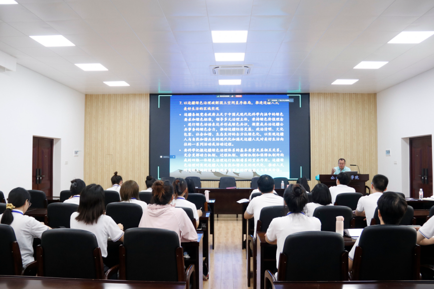 互动环节中,史云贵细心解答了同学们关于“纽约高线公园规划理念”、“新质生产力如何助推公园城市建设”和“广西怎样实现绿色包容发展”等方面的提问,同学们纷纷表示受益匪浅。最后,覃志敏对本次讲座进行了精要总结,肯定了史云贵对于绿色发展与边疆治理的深刻见解,并鼓励同学们对讲座内容进行深入思考,积极探索绿色发展与边疆治理新思路。