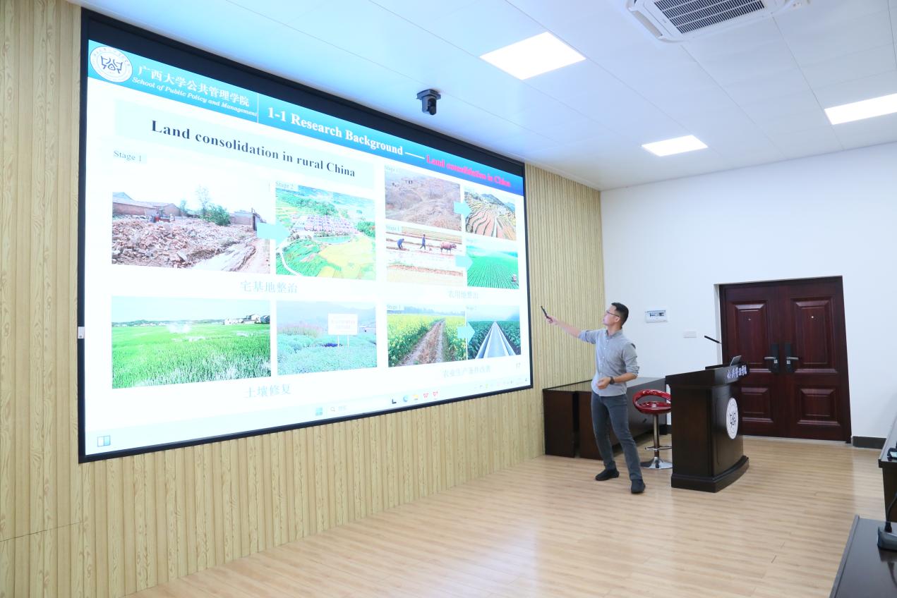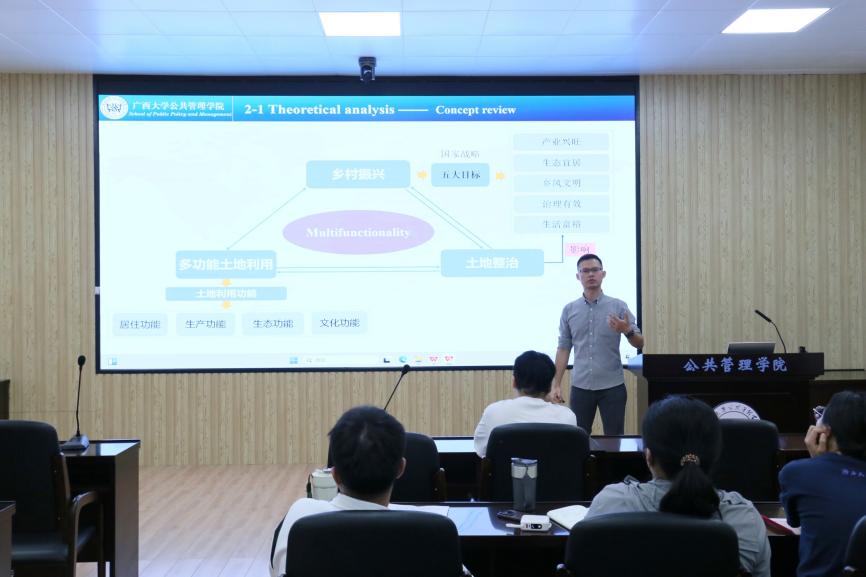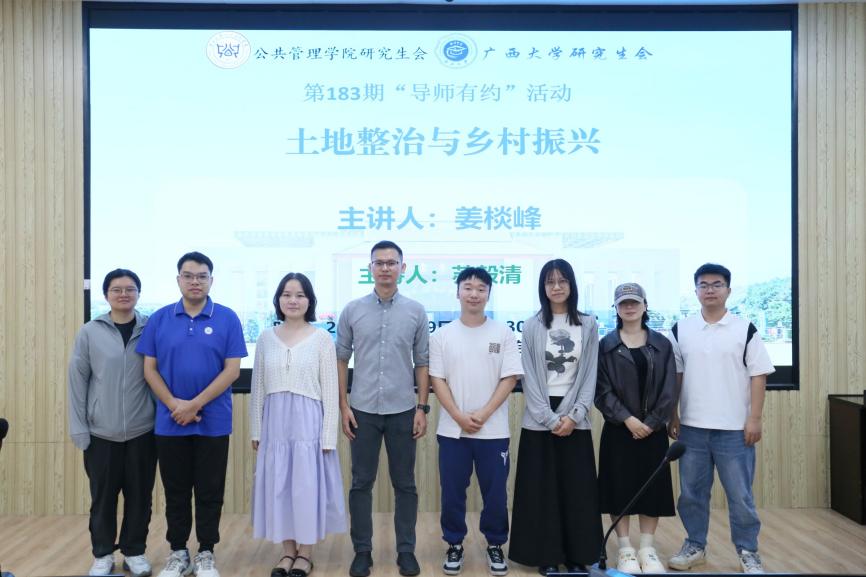 5月29日上午,广西大学第183期 “导师有约” 系列活动暨beats365亚洲版研究生第46期学术沙龙活动在学院107报告厅顺利举行。本次活动主题为“土地整理与乡村振兴”,特邀姜棪峰老师为主讲人,旨在深化广大师生对国家土地政策与乡村振兴战略的理解,探讨如何发挥土地整治在促进乡村振兴上的重要作用。