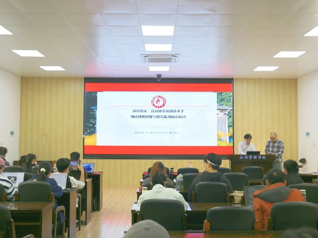 11月20日下午,广西大学第196期“导师有约”系列活动暨beats365亚洲版研究生第50期学术沙龙活动于学院107报告厅顺利举行。本次活动以“洞察微末:高分辨率遥感技术下的细碎耕地提取与撂荒监测前沿研讨”为主题,引谈人为我院曾良恩老师,与谈人为院长聂鑫教授。本次活动由苏毅清副教授主持,姜棪峰老师、吴双蕾老师、徐云鹏老师等众多师生到现场聆听。