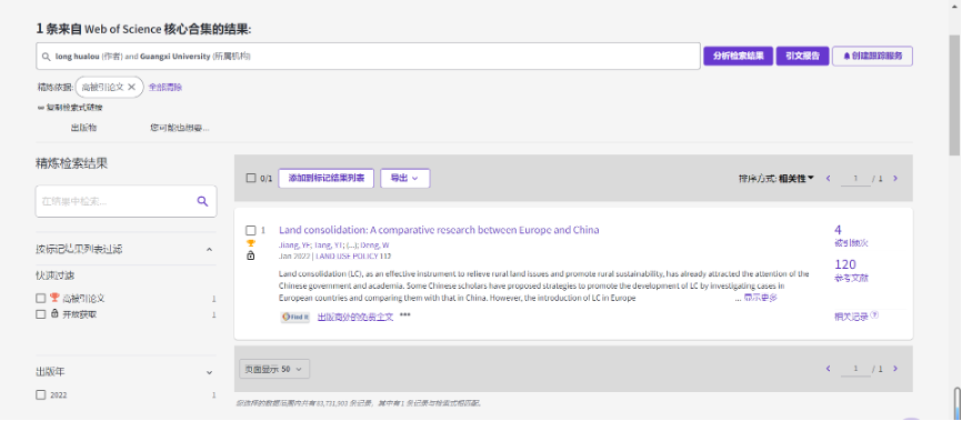 近日,根据科睿唯安(Clarivate)公布最新数据显示,我院龙花楼教授以共同通讯作者发表的成果入选社会科学领域ESI全球Top 1%高被引论文。该文也是我院今年以来首篇入选ESI全球高被引的论文,文章的入选对提升我院国内外学术影响力产生了重要的积极作用。