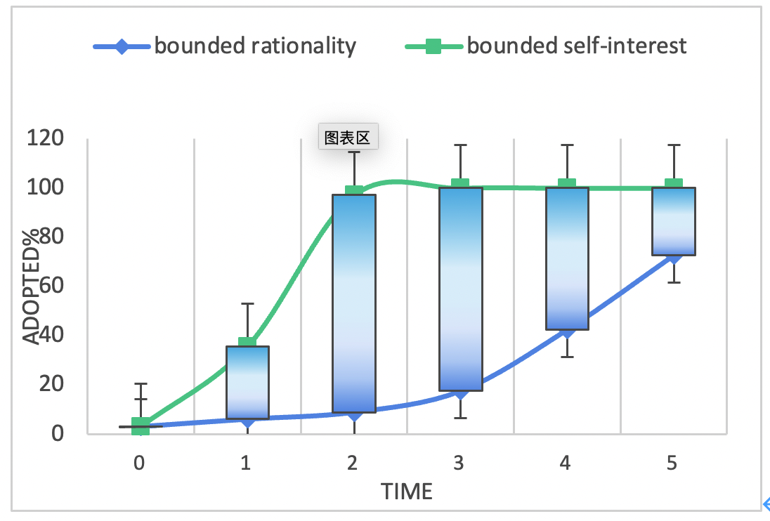 对有限理性和有限自利下农户湿地保护行为采纳率增长速度分析显示(图1),相较于有限理性,在有限自利下整体的农户湿地保护行为采纳率增长速度较快。换句话说,从众更有利于促进农户保护湿地。这项研究的创新点:首先,我们的研究采用了实地实验与ABM结合的混合交互仿真方法来研究生态脆弱型人地系统的可持续发展模式,并将有限理性和有限自利两个不同视角下农户的湿地保护行为进行对比,为后期研究构建农户环境行为决策模型提供了更为创新的思维角度;其次,在方法上本文解决了ABM在模拟过程中存在的高度抽象和简化与现实世界的不一致的问题,验证了混合交互仿真应用于社会生态领域的可行性,拓宽了该领域目前可用的方法范围;最后,在结论上本文的研究结果为生态脆弱区,尤其是生态保护与农户生计发展矛盾激烈地区的决策者引导群体参与生态保护与可持续发展提供了长远的、可行的普适性建议。