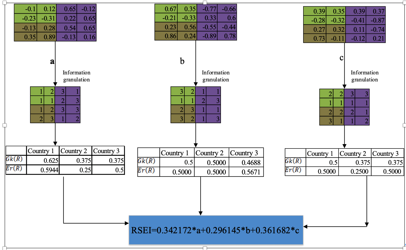 Fig. 1. Calculation process of the RSEI indicator weight based on scale transformation knowledge granulation entropy.