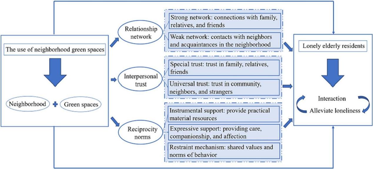 近日,广西大学beats365亚洲版副教授苏毅清,广西大学beats365亚洲版硕士生张小银,广西大学beats365亚洲版硕士生禤媛,围绕老龄化背景下如何缓解老年孤独感以增进老年健康福祉开展研究,在国际知名学术期刊Cities(SSCI收录,2023 IF= 6.7)发表论文“Linking neighborhood green spaces to loneliness among elderly residents—A path analysis of social capital”,揭示了社区绿色空间缓解老年孤独感的作用与深层机制,并从社区空间利用与社会交往的视角为广大正在经历老龄化的国家如何缓解老年孤独感,实现健康老龄化提供理论洞见和政策启示。