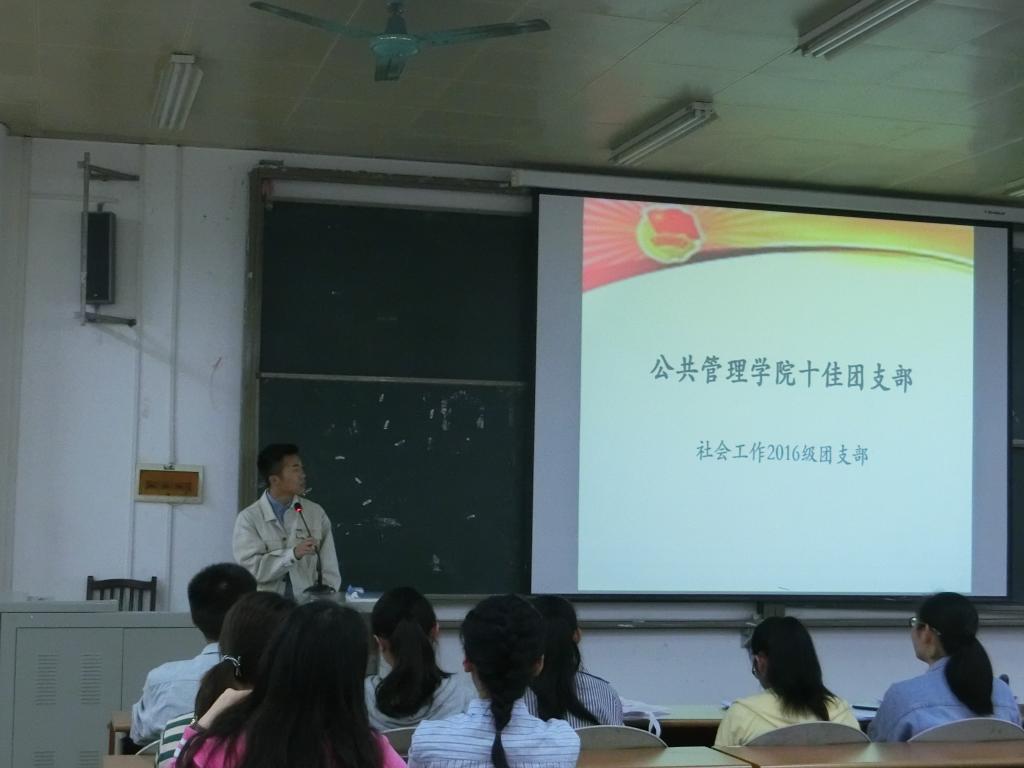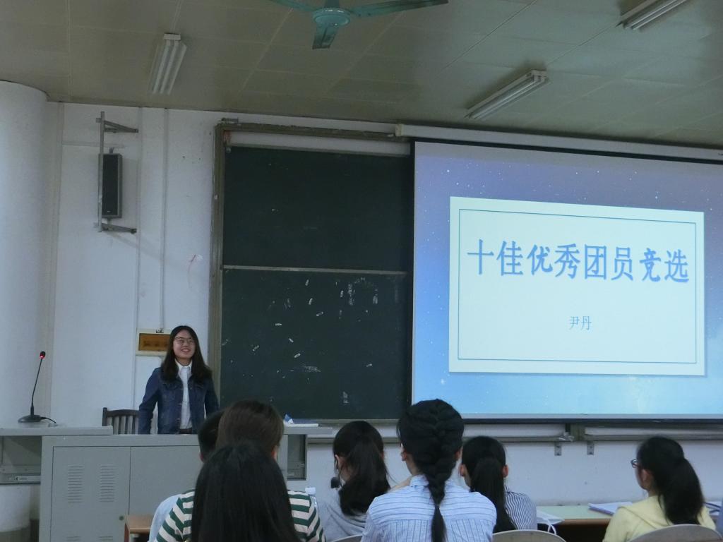 本次评优大会采用竞选模式,竞选十大团员的有:张菁、沈庆铭、锁天泽等13个在学习、思想、生活各方面表现突出的同学。他们按照抽签顺序依次上台竞选,用PPT展示自我在学习、科研、社会实践活动方面的突出成绩,获得台下同学热烈鼓掌。特别是研究生二年级的张菁,其在介绍自我科研方面的成绩时,台下自发响起热烈掌声。除此之外,社工16和公管14团支部分别上台竞选十佳团支部及五四红旗团支部。在竞选展示结束,进行优团优干的投票。