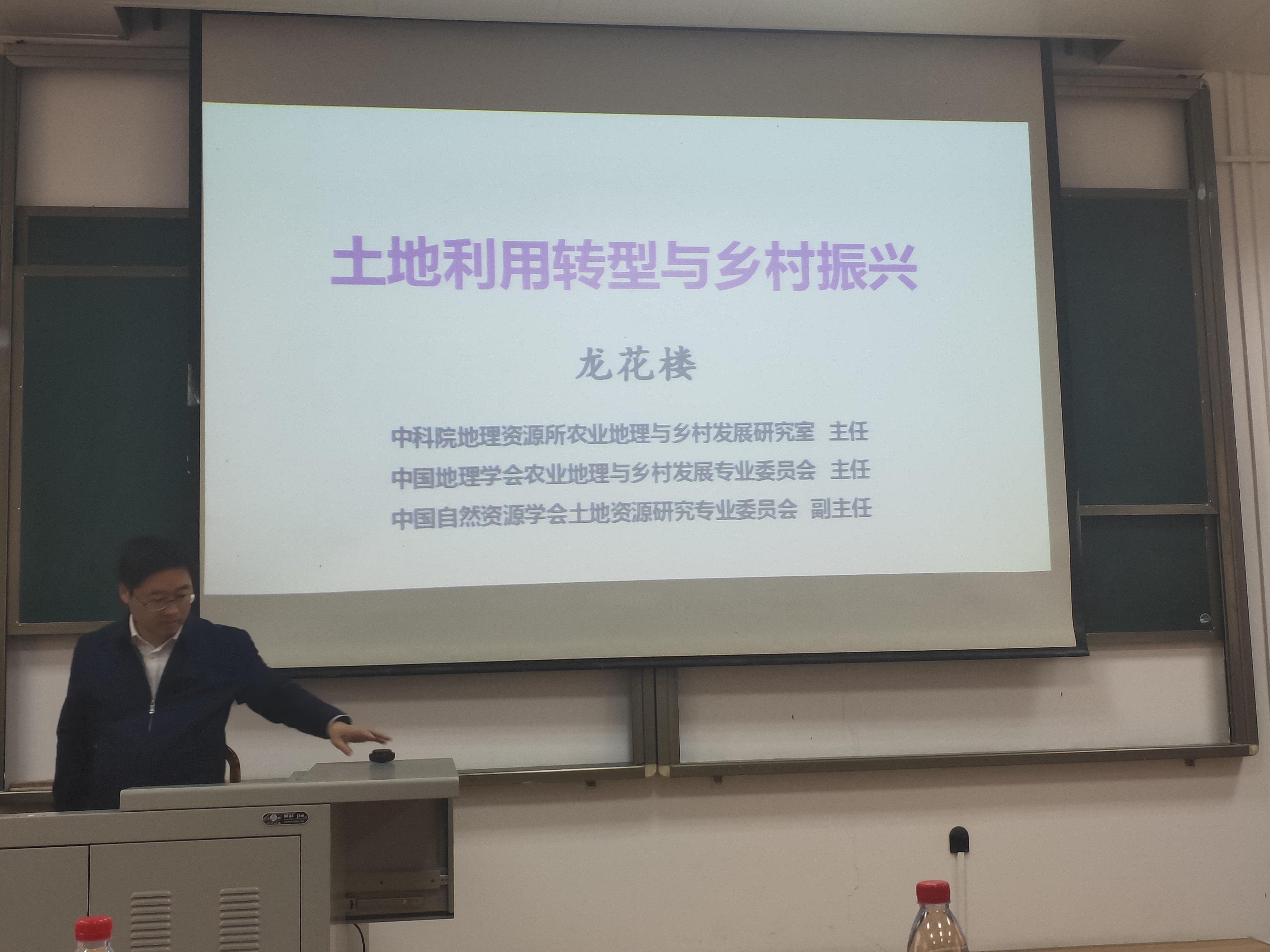 12月5日下午,中国科学院地理科学与资源研究所研究员、博士生导师、农业地理与乡村发展研究室主任,中国科学院精准扶贫评估研究中心副主任,中国科学院大学岗位教授龙花楼受邀到我院107学术报告厅开展了题为“土地利用转型与乡村振兴”的学术报告。