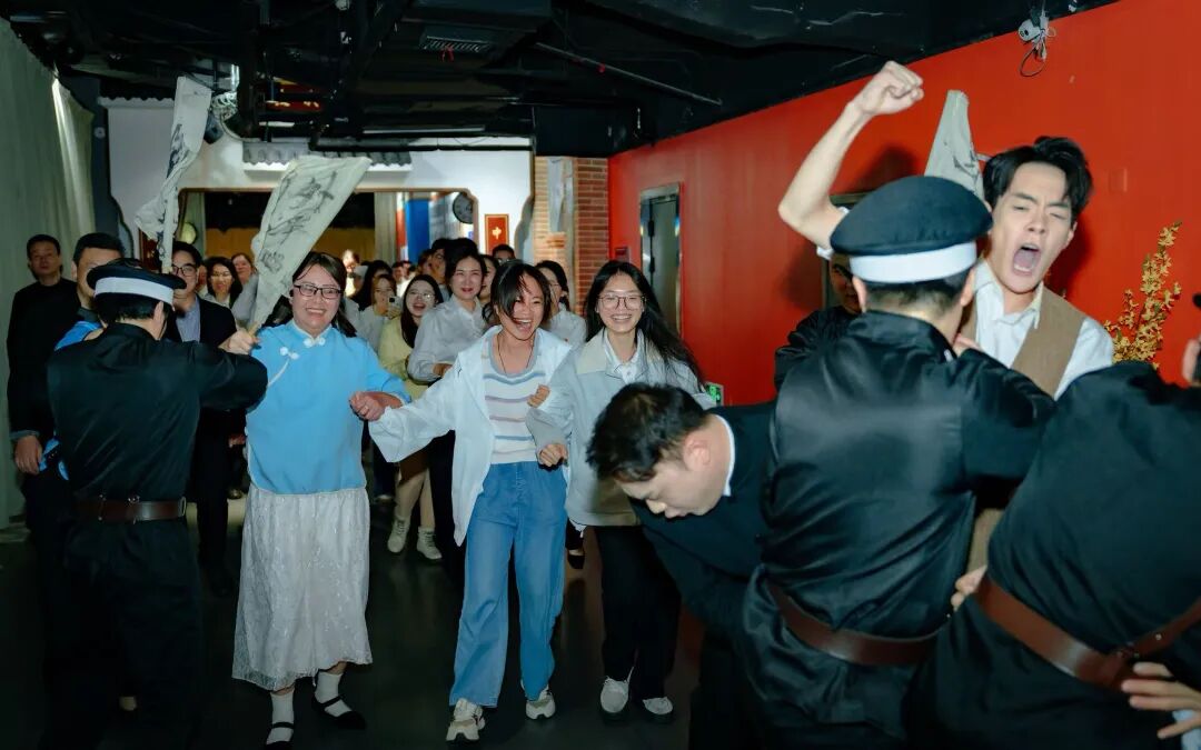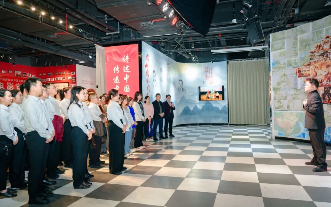 党员化身为“电影剧情参与者”,体验沉浸课堂《红》。电影党建教育基地里,复古的街道布景还原了百年前的时代风貌。支部党员们在具有代入感的专业场景布置中,沉浸式参与演员们演绎的《五四精神》 《红船之上》《我爱你 中国》等红色主题电影的经典情节,主动参与剧情推进、与角色深度对话,触摸历史的温度,让党史学习教育变得鲜活生动、入脑入心。