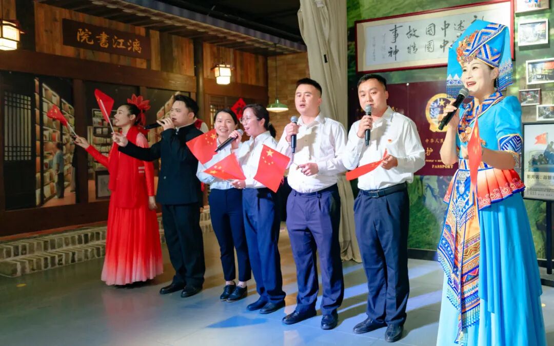 《我和我的祖国》旋律响起,全体党员齐声高唱,用歌声传达对祖国的热爱,表达身为中国共产党党员的使命与担当。激昂旋律让个人理想与家国情怀同频共振,让党性教育更具感染力、吸引力。