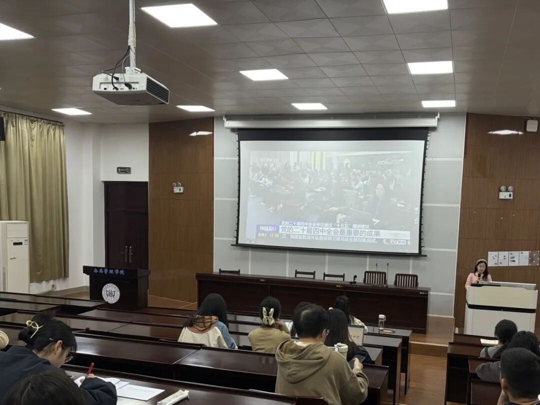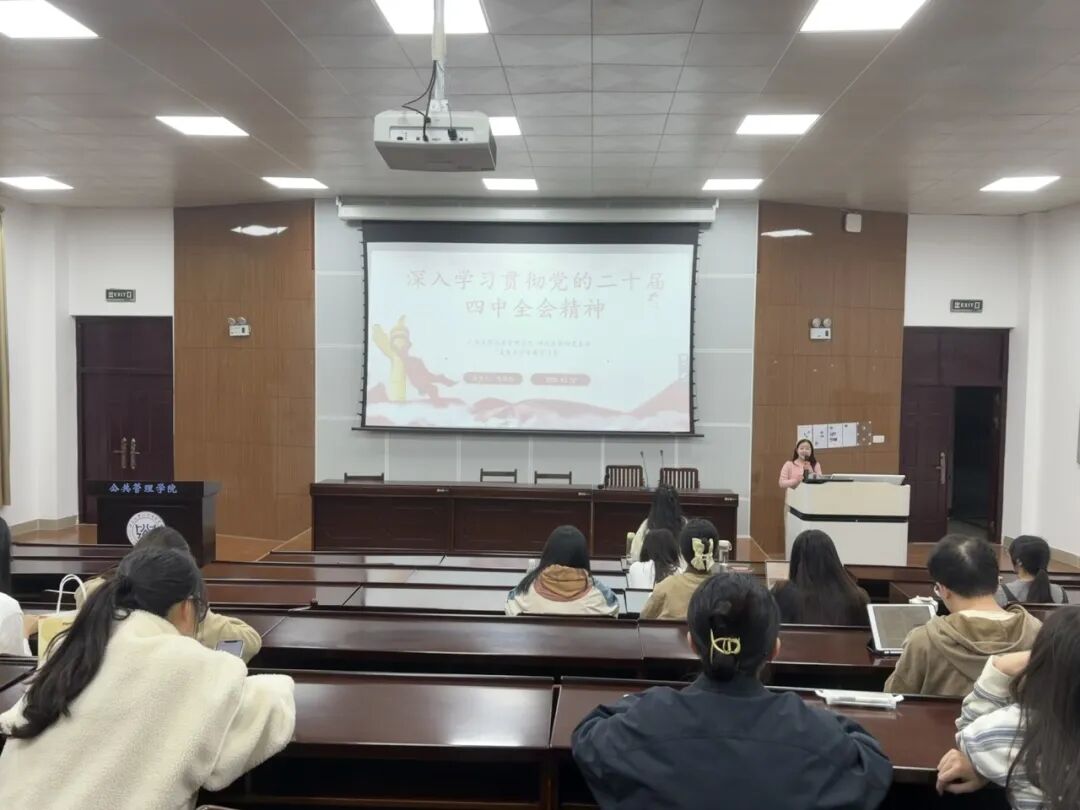 为深入学习贯彻党的二十届四中全会精神,引导支部党员准确把握新时代新征程党的使命任务,12月10日,我院研究生第四党支部召开支部大会,举行“深入学习贯彻党的二十届四中全会精神”专题学习会。会议由支部书记韦程瑶同志主持,通过“领学+观映+研讨”三位一体的学习模式,推动精神内核入脑入心。