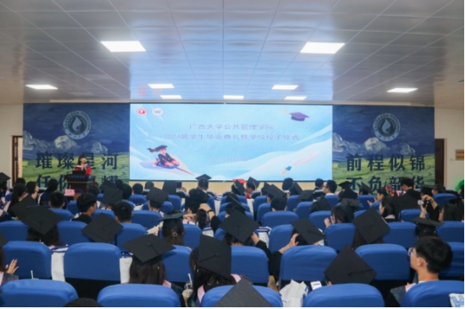 As the degree conferral ceremony began, Qin Zhimin announced the degree conferral decision. Graduates, including undergraduates, academic master's students, and doctoral candidates, took turns to receive their degrees. Members of the academic degree committee performed the tassel-turning ceremony, conferred degree certificates, and posed for commemorative photos. Class advisors and counselors offered sincere blessings to each graduate. With this, the graduation ceremony and degree conferral for the 2024 cohort of undergraduates and academic master’s students at the School of Public Policy and Management has successfully concluded.